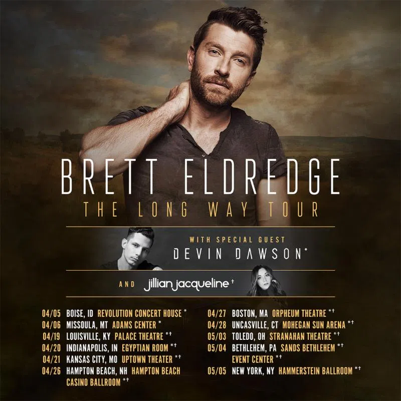 Brett Eldredge announced he will embark on his first major headlining tour—dubbed The Long Way Tour—in 2018.